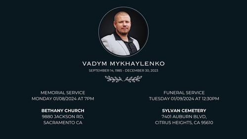If you have it in your heart to support his wife (Olesya) and two young children, Mia(9) & Eleanor(5), to cover the funeral expenses and help Olesya and her daughters for a short period of time as Vadym was the breadwinner for his family.