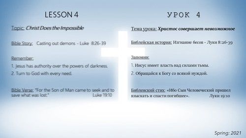 Ages 10-11: Bible Story, Task 1 Ru, Task 2 Eng, Task 3 Eng/Ru
