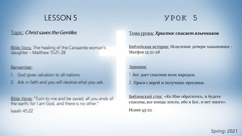Ages 6-7: Bible Story, Task 1 Eng/Ru, Task 2 Ru, Task 3 Eng