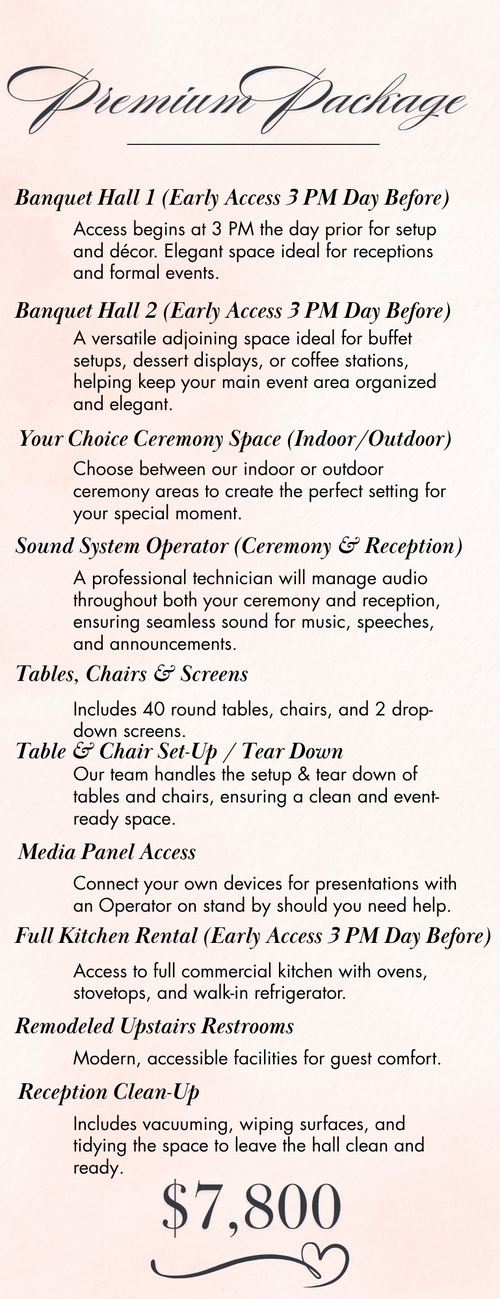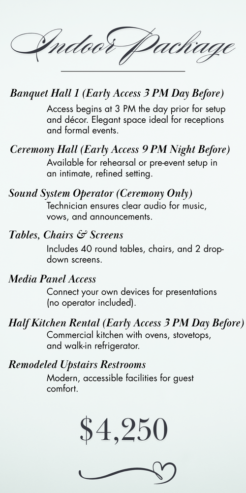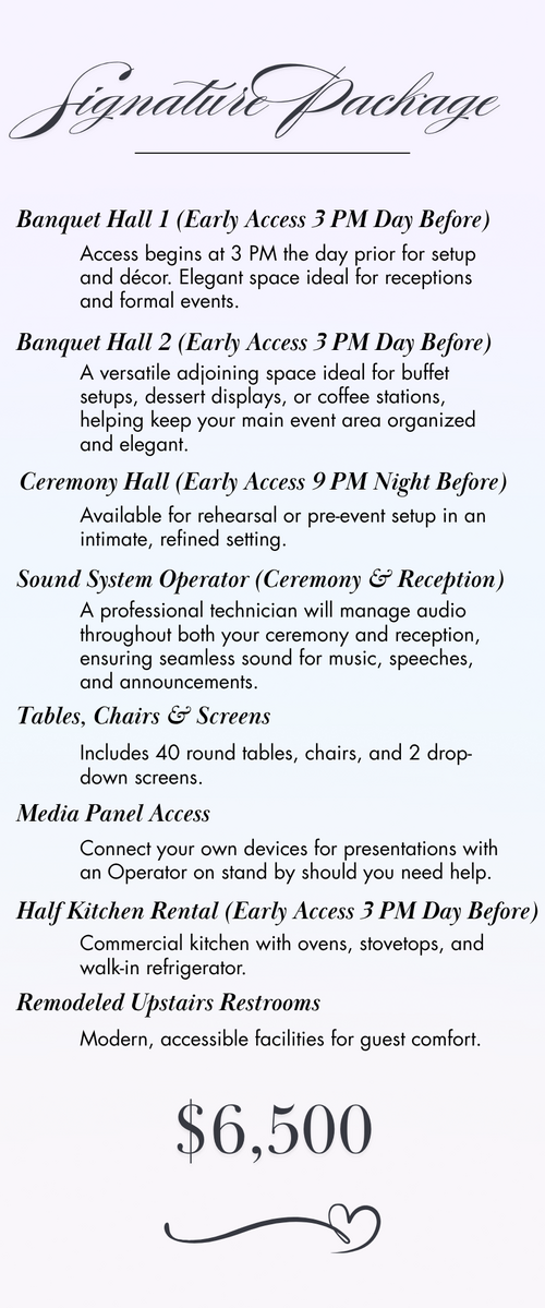 To ensure every detail of your event is executed precisely to your expectations and to avoid any misunderstanding, we kindly invite you to contact our office directly to confirm all arrangements.
