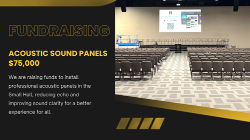 We are working toward a vision of a Small Hall that is fully equipped to serve our church and community—featuring professional sound, a well-designed stage and lighting, video projection screens, and live-streaming capabilities for a wide range of ministries and events.